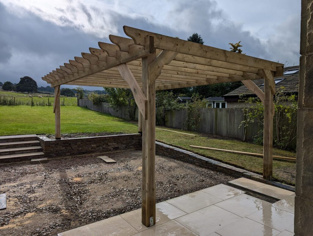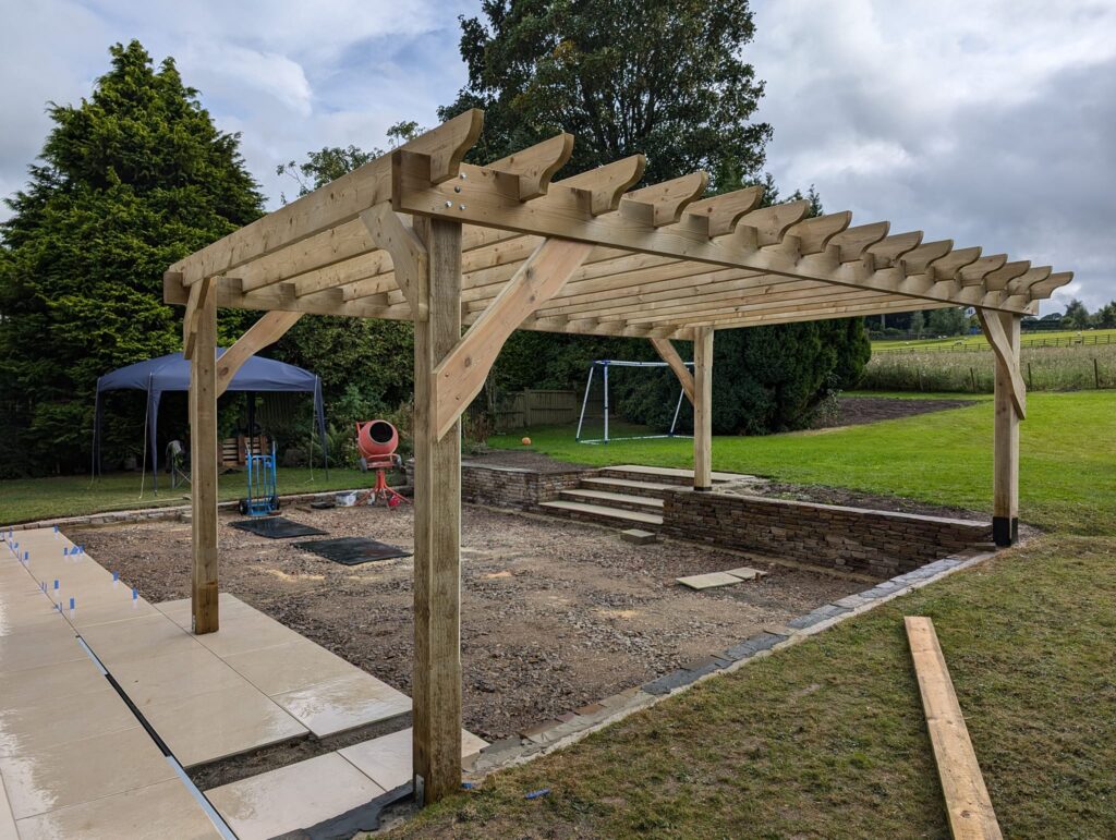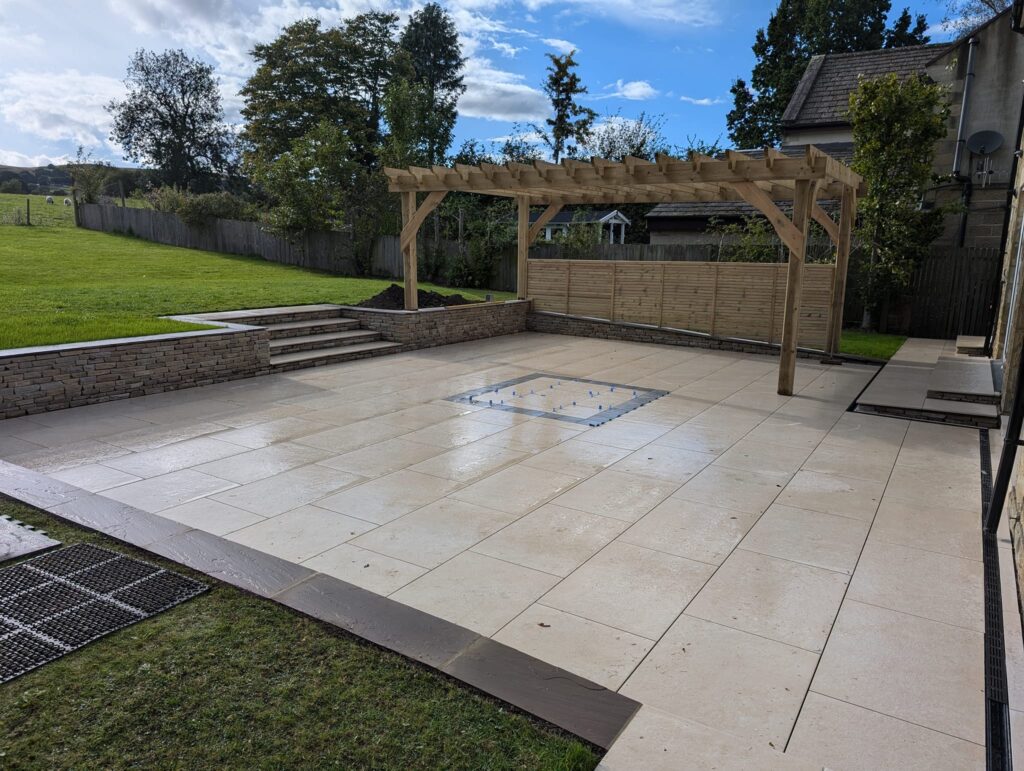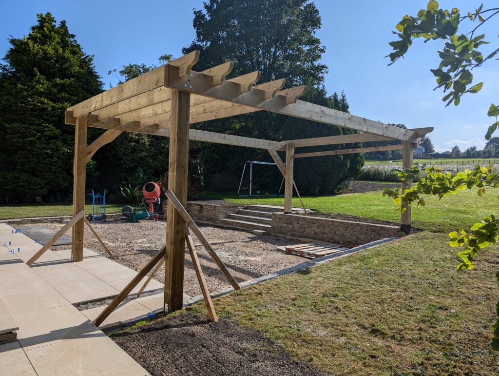 The remit for this job was to create a modern, sleek entertaining space, but also keeping a feel of traditional country garden. This was achieved with the material choices, the porcelain paviours providing clean, modern lines and the dry effect wall and timber pergola providing a bit of a traditional feel.